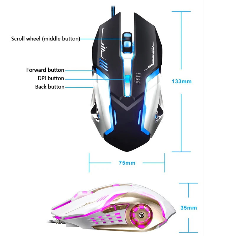 Very Recommended - New USB Wired Gaming Mouse 4800DPI 5 Buttons LED Optical Professional Pro Mouse Gamer Computer Mice for PC Laptop