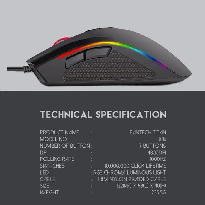 Gaming Mouse Mice 4800dpi USB Wire RGB Programmable 7 Button Ergonomic For Computer QJY99