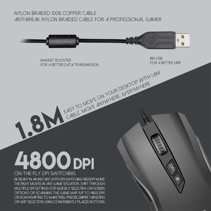 5.200-4800DPI free switching for different game needs