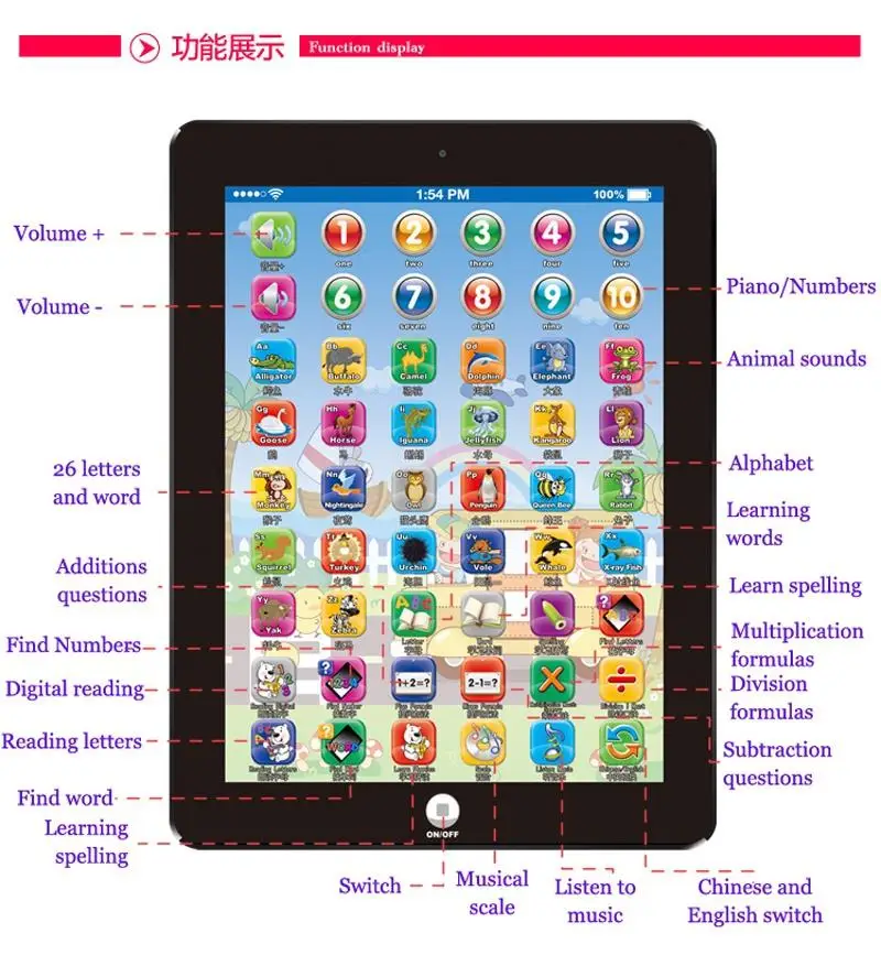 This learning machine is great for kids auditory training as well as congition of music ,learning English math alphabet