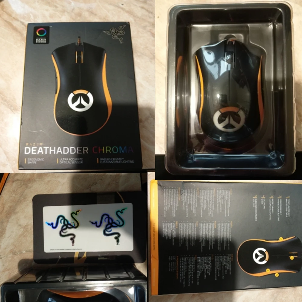| General | Brand: Razer Model: Overwatch Razer DeathAdder Chroma Type: Wired Mouse Features: Gaming Color:Black + Orange |